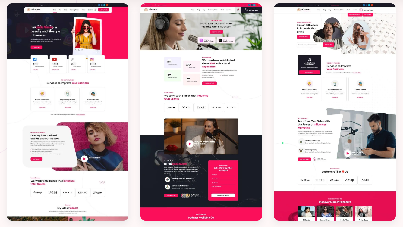 Influencer is fast, mobile-friendly, and SEO-optimized, ensuring your content looks great and performs well across all platforms. It also comes translation-ready and supports RTL languages for global reach.