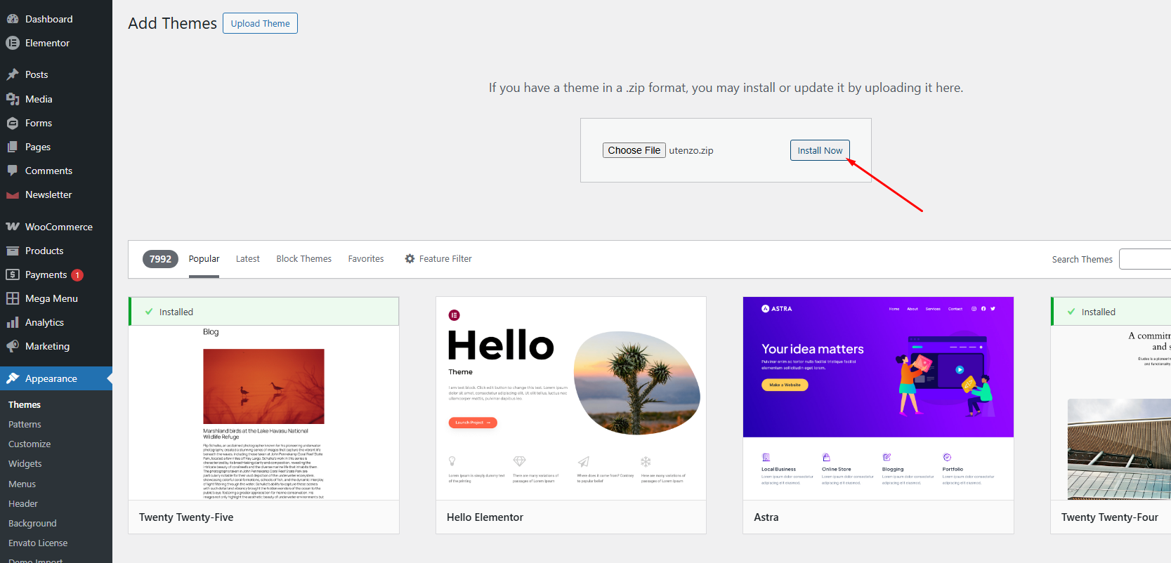 utenzo.zip). - Click the Install Now button to begin the installation process.